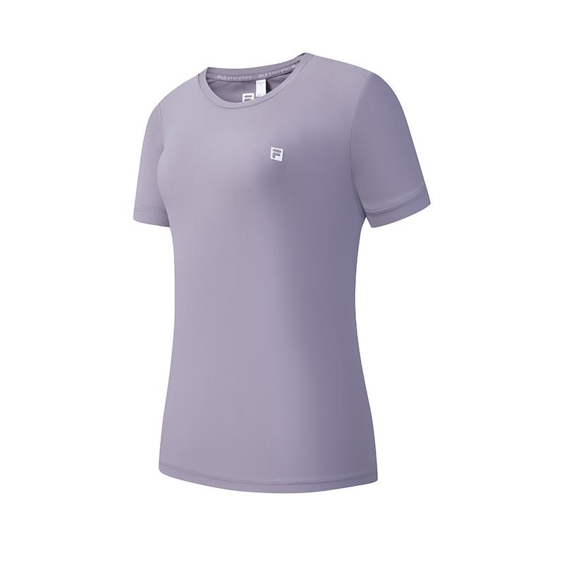 Fila Fitness Classic Minimalist Basic Solid Color Sports Training Versatile Breathable Short Sleeve T-Shirt Women Tops Clematis-Purple A51W621104FPU