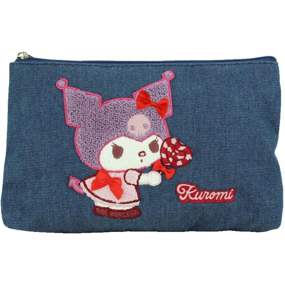 Yasuda Tsusho Sanrio Denim Sagara Embroidered Pouch with Kuromi Character Embroidery, Denim Material, Small Item Storage, Multi-Pouch, Approx. H16 X