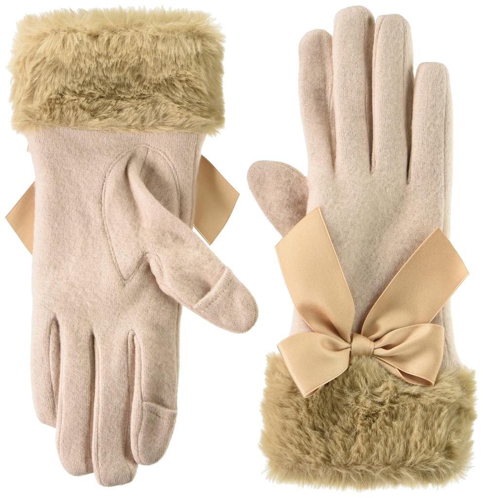 Maison De Fleur Women's Fur Ribbon Gloves, Beige, 8A13FKJ0200