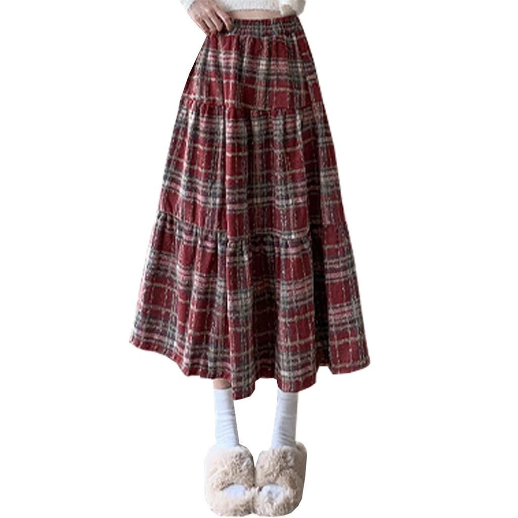 Volen Check Lacquer Check Loose Beautiful Women's Skirt, Fall/Winter, Skirt, Pattern, High-Waisted, A-Line, Flattering, Slimming, Fit, (YJP0035W-L)