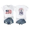 Women's Casual Independence Day 250 Anniversary Printed T-shirt Round Neck Pullover Short Sleeve Top