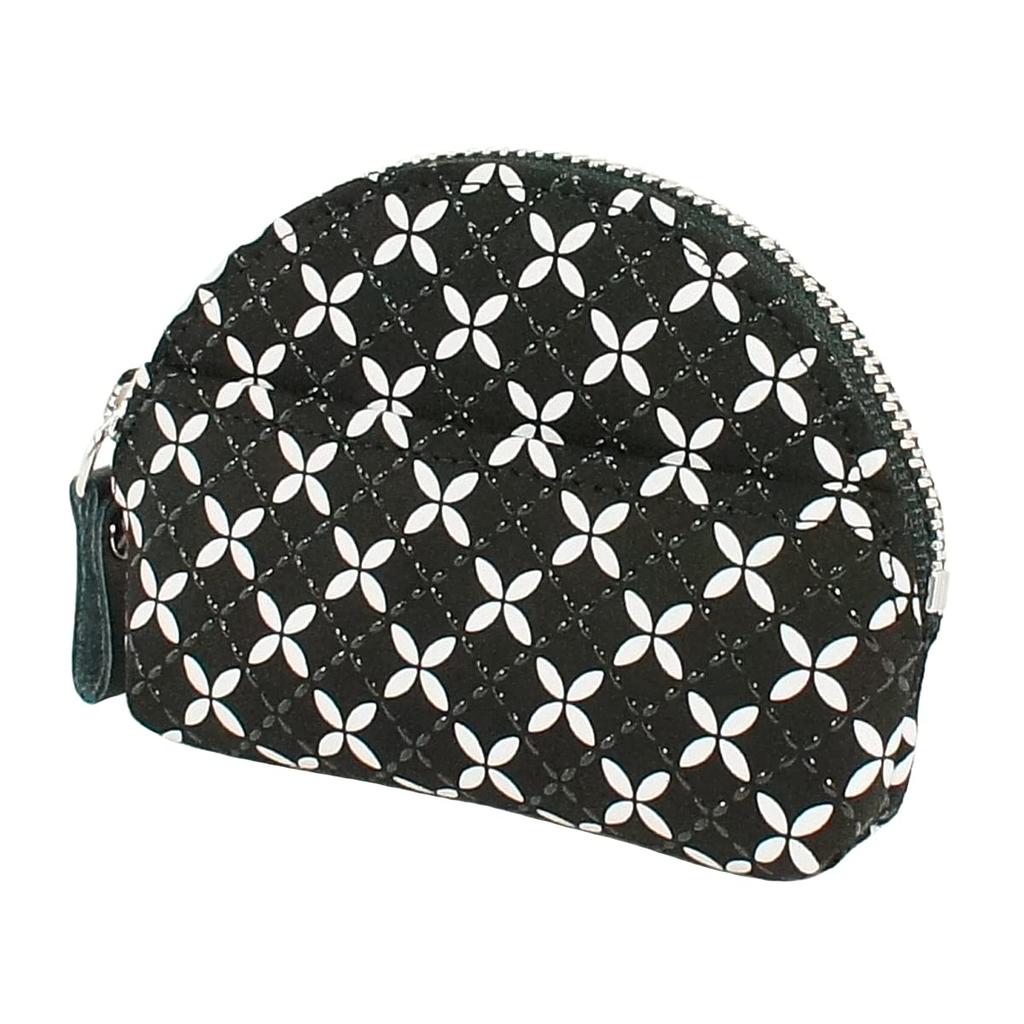 Indenya Inden Coin Purse, Deerskin Leather, Soft, Shippo Pattern, Black with Black Lacquer and White Chintz, 8801