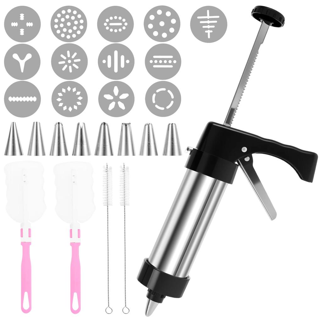 Cookie Press Kit Detachable Stainless Steel Cookie Squeeze Gun Kit with 13 Biscuit Trays 8 Frosting Nozzles Kitchen Baking Tools