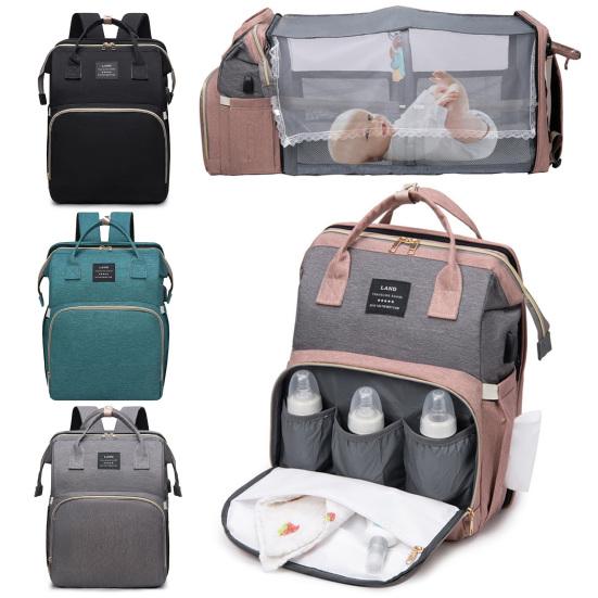 Additional features include a sunshade net to protect your baby from sun and insects, a USB charging port inside the main compartment for convenient device charging, and a detachable toy arch with pendant toys to entertain your little one. Designed for comfort and convenience, it has padded shoulder straps, an easy-grab handle, stroller straps for attachment, and can be carried as a backpack, handbag, or stroller bag. This all-in-one diaper backpack ensures you stay organized and prepared on the go.