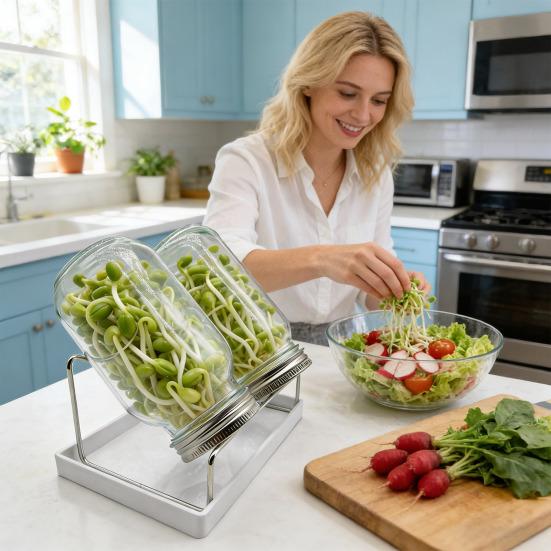 Versatile Indoor Gardening Solution: Perfect for easily growing a variety of fresh, organic sprouts—such as broccoli, mung bean, and salad greens—right at home with a jar and stand, adding vibrant nutrition and flavor to your meals all year round.