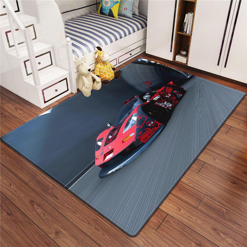 Racing Car Rug Multi-size Anti-Slip Polyester Carpet High-Definition Sport Car Print Modern Living Room Kids Game Room Decor Mat