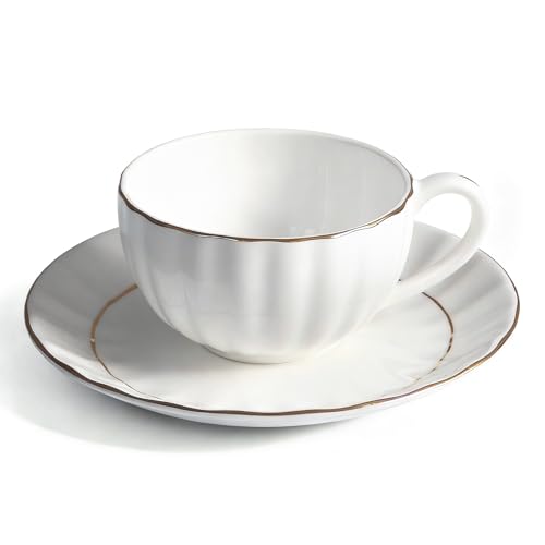 YFWOOD Bone China Cup & Saucer, 180ml, White, Suitable for Tea and Coffee, Lightweight and Stylish, Perfect As a Gift for Breakfast or Afternoon Tea