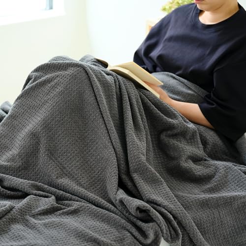 Tsubame Towel, Established In 1912, Made In Japan, Single Size Fluffy Waffle Blanket, 100% Organic Cotton, 145cm X 190cm, Gray, Soft Waffle Pattern, S