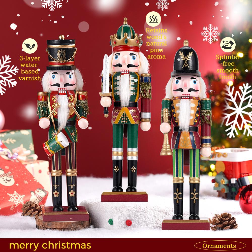 3pcs 30cm Christmas Decorations Nutcracker Soldier, Wooden Nutcracker Figures,Christmas Tree Party Decoration For Home/Hotel