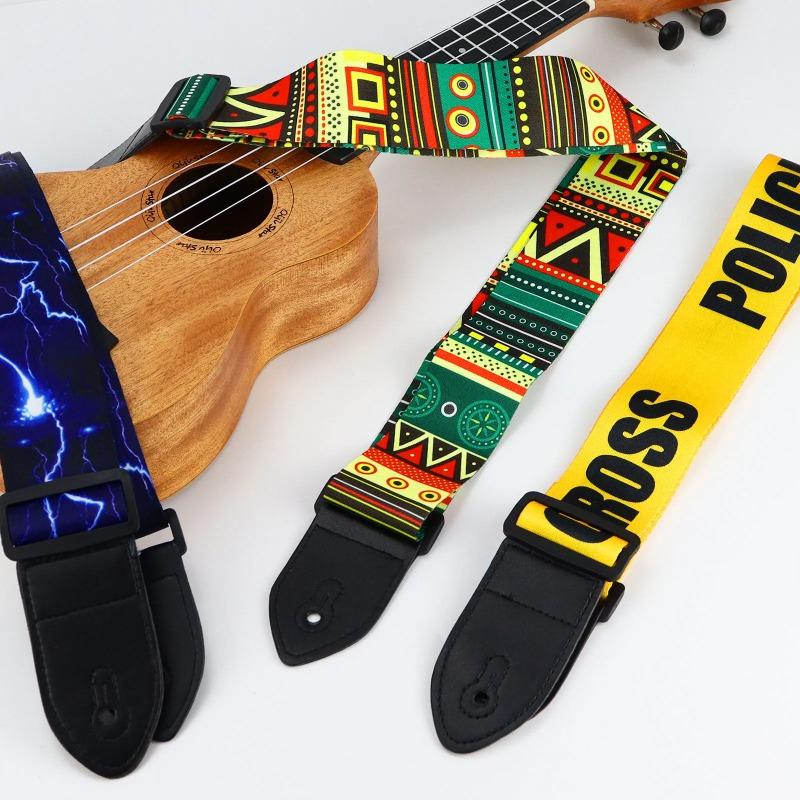 Electric Guitar Strap Polyester Printed Design Adjustable Length Soft Comfortable Durable Shoulder Support for Bass Acoustic