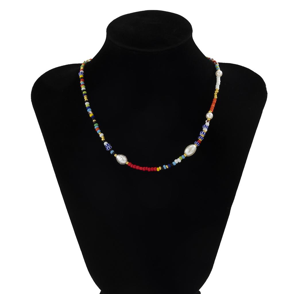 Accessories, Creative Contrasting Color Rice Bead Beaded Necklace Women, Simple Geometric Imitation Pearl Single-Layer Item Decoration