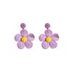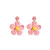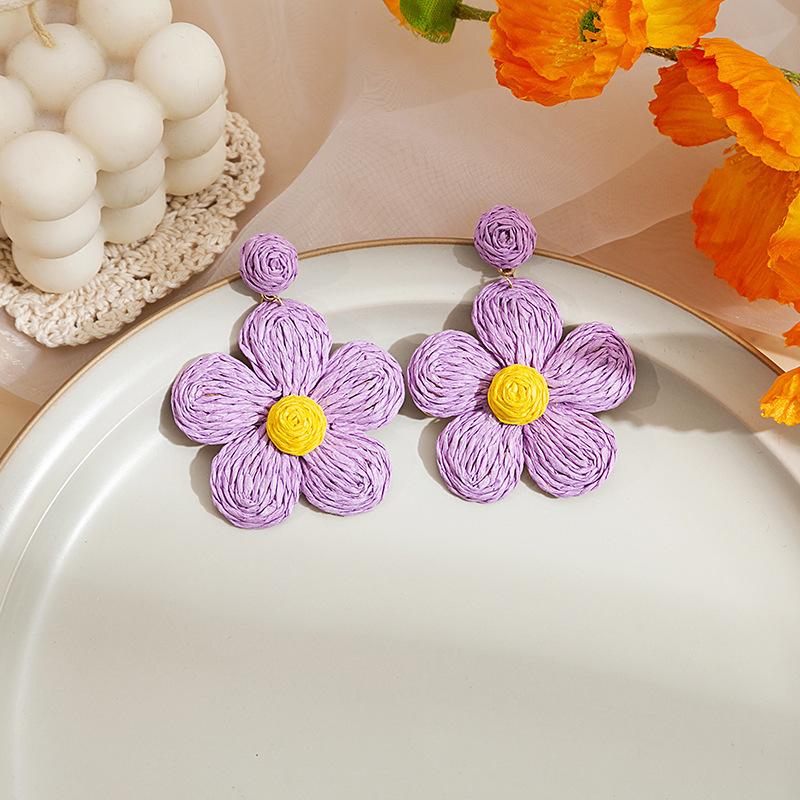 Hand-Woven Raffia Earrings Cute Solid Color Flower Earrings Vacation Style Candy Color Earrings