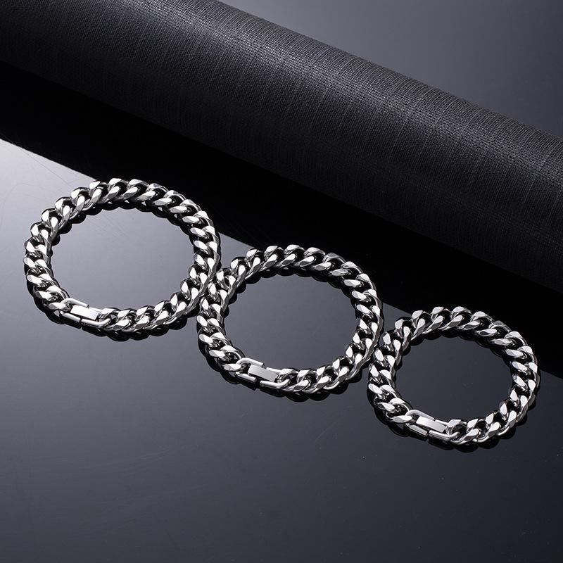 Tide Cool Hip Hop Cuban Chain Does Not Fade Titanium Steel Bracelet Boys And Girls Thick Bracelet Couple Versatile Light Luxury Trendy Brand Jewelry