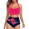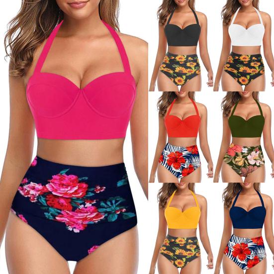 Solid color top with flower printed bottoms bathing suits makes you look amazing during a beach vacation, in a swimming pool, or honeymooning in Hawaii, etc.