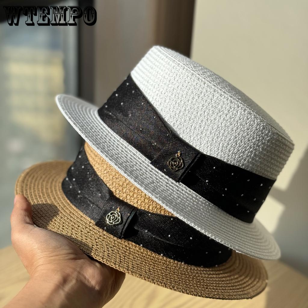 French Flat Straw Hat Woman Summer Beach Photo Vacation Sunshade Sunscreen Top Hat