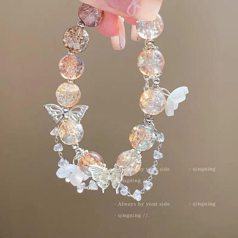Flower And Butterfly Bracelet, Sweet And High-end Glass Wrist Chain, New And Fashion Versatile Bracelet Accessory