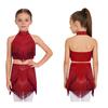 Eye-Catching Latin Dance Top with Skirt for Girls: Halter Neck Rhinestone Tassel Crop Top & Attached Briefs Skirt for Recital