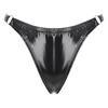 Womens Patent Leather Thong Underwear Elastic Waist O Ring Design Solid Color Glossy Briefs Nightclub Panties
