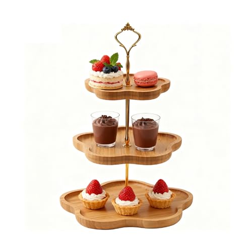Siawadeky 3-Tier Wooden Cake Stand, Dessert Stand, Afternoon Tea Stand, Assembled, for Displaying and Storing Sweets, Fruits, and Cakes, Perfect for A