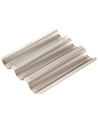 CHEFMADE French Bread Pan, French Baguette Tray, 3-Rack, Non-Stick Cake Pan (Small)