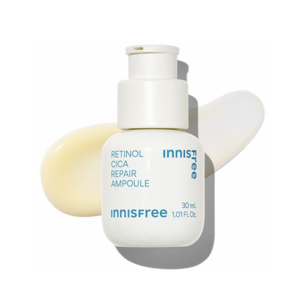 INNISFREE Retinol Cica Ampoule is a soothing, anti-aging serum that combines retinol and Centella Asiatica (Cica) extract to improve skin texture, elasticity, and resilience. It helps reduce the appearance of fine lines while calming sensitive or irritated skin. The lightweight, fast-absorbing formula delivers hydration and supports skin barrier recovery, making it ideal for dry, sensitive, and aging skin.