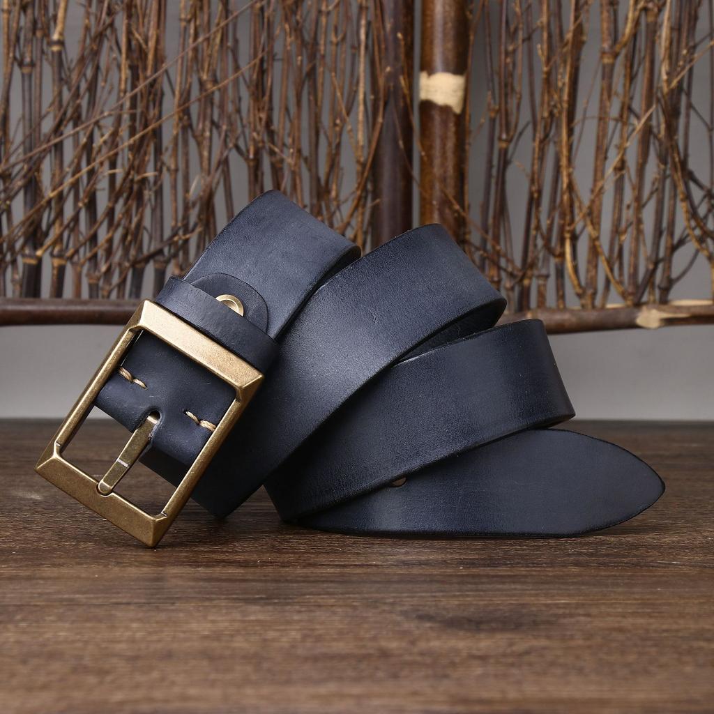 Retro Thickened First-Layer Cowhide Copper Buckle Belt Men'S Genuine Leather Pin Buckle Trendy Versatile High-End Tough Guy Rein Belt