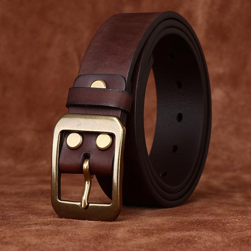 Washed Thickened Retro Matte First Layer Cowhide Belt Men'S Leather Simple Versatile Casual Jeans Copper Buckle Belt