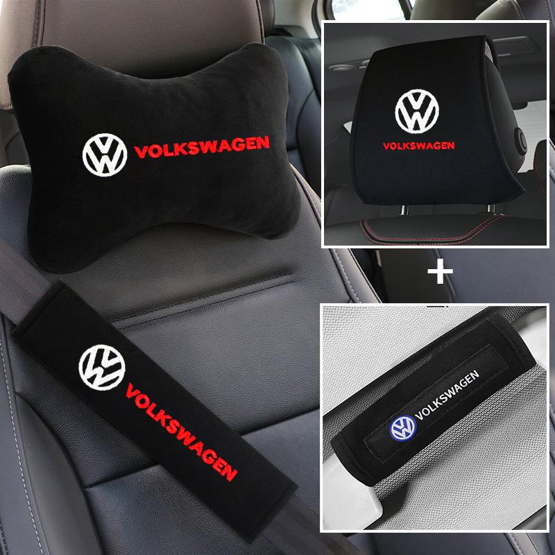 2026 Hot For VW VOLKSWAGEN Set Car Seat Neck Pillows&Seat Belt Cover Comfort Rest Travel Cushion For Volkswagen VW GOLF Polo Tig