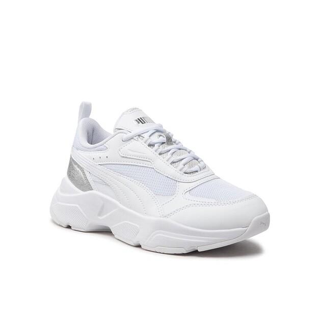 SPECIFICATIONS ───────────────────────── Model: Cassia Distressed 387645 02 Colour: White Appointment: Casual Collection: Puma Sportstyle Finishing: Pastel Brand name: Puma Other: Textile laces Manufacturer's color: White/Puma White/Puma Silver Clasp type: Lacing Sock type: Round Heel type: Flat Total shoe height: 12 cm sole thickness: 3 cm Shoe weight: 168 g External material: Faux leather Inner material: Textile sole material: Synthetic material Manufacturer: PUMA POLSKA SP. Z OO Insole material: Textile