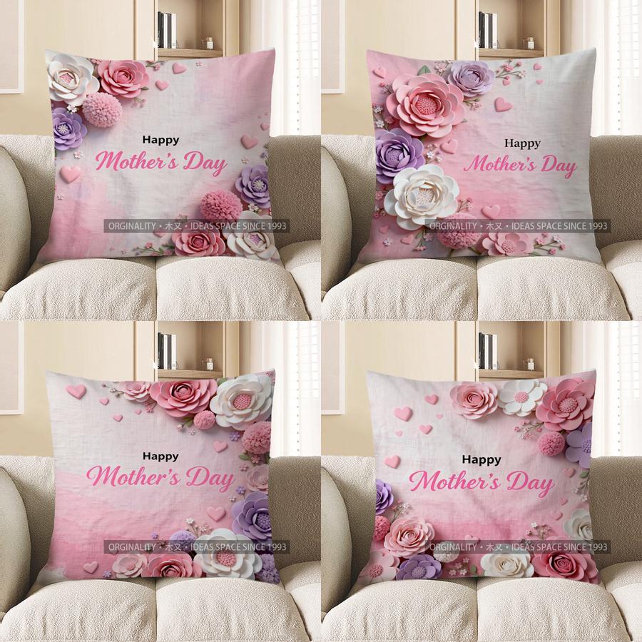 Home Decor Happy Mother'S Day Floral Heart Pattern Cushion Cover Suitable For Sofa Bedroom Car Pillow Cover