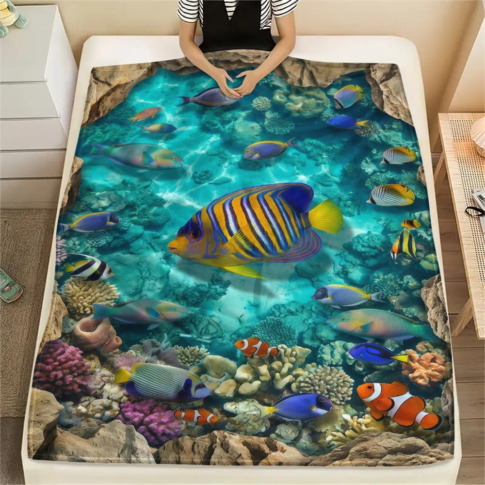 1PC Marine Animals Print FlAannel Blanket, High Quality Comfortable for All Seasons, Home Decor, Warmth and Comfort