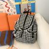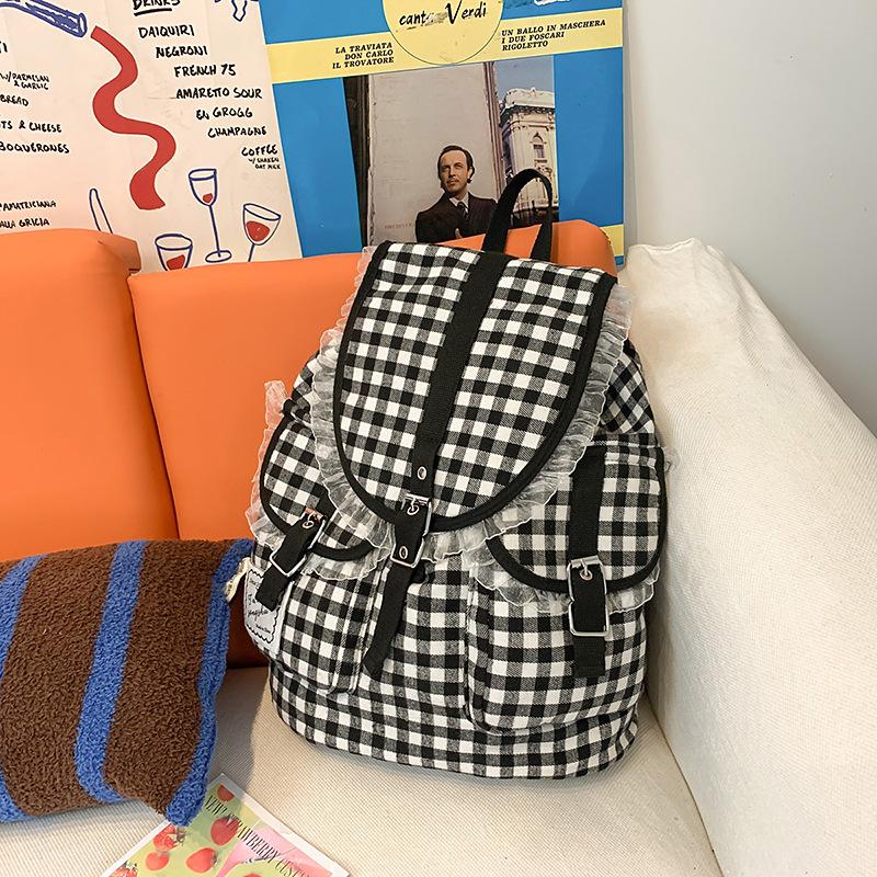College Style Schoolbag for Female Junior High School Students Black and White Plaid Lace Backpack Large Capacity High School Student Backpack Tide