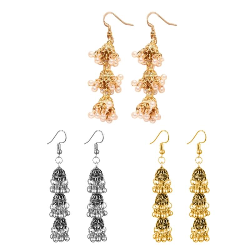 Embraces bohemian stylish with these three layer hollow bells tassels earrings, featuring intricate ethnic designs and lightweight tassels that sways gracefully to make you stand out in any crowd.