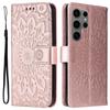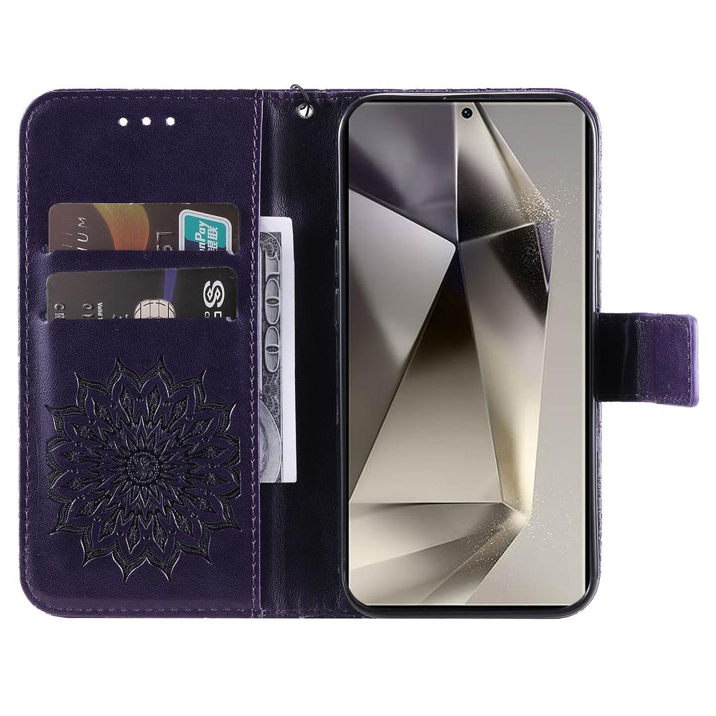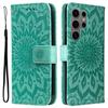 For Samsung Galaxy S25 Ultra Phone Case Sunflower Imprinted Leather Wallet Stand Cover with Strap