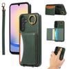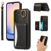 For Samsung Galaxy A24 4G (162.1x77.6x8.3mm) PU Leather Back Case Card Holder Kickstand Phone Cover with Wrist Strap