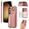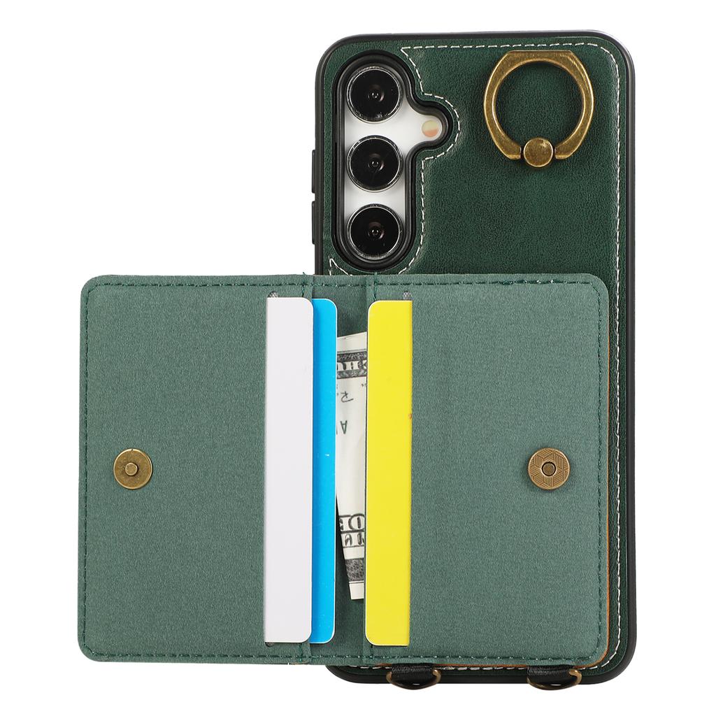 For Samsung Galaxy S24 PU Leather Back Case Card Holder Kickstand Phone Cover with Wrist Strap