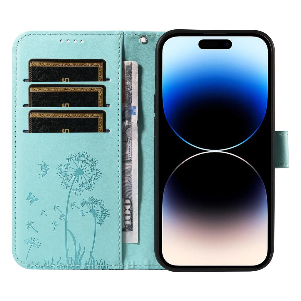 For iPhone 14 Pro Leather Case Wallet Phone Cover Dandelion Imprint