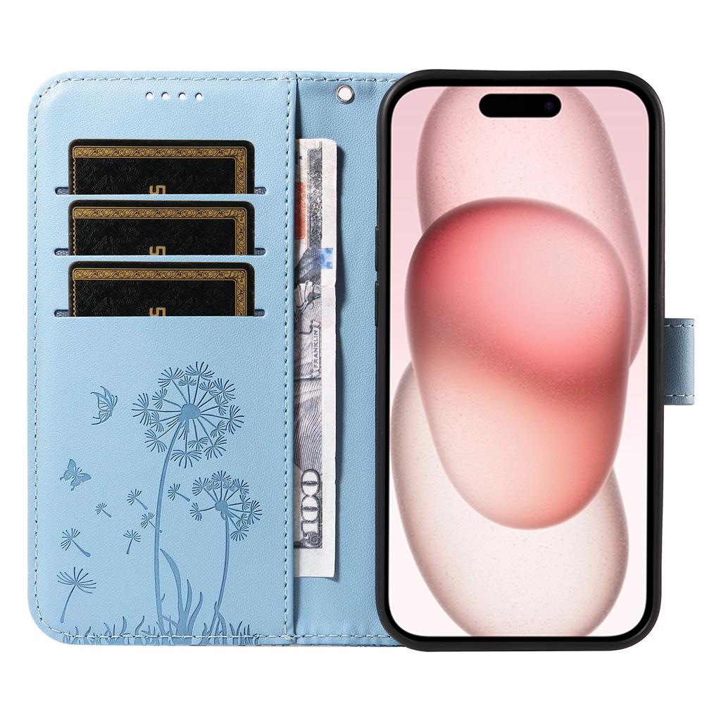 For iPhone 15 Leather Case Wallet Phone Cover Dandelion Imprint