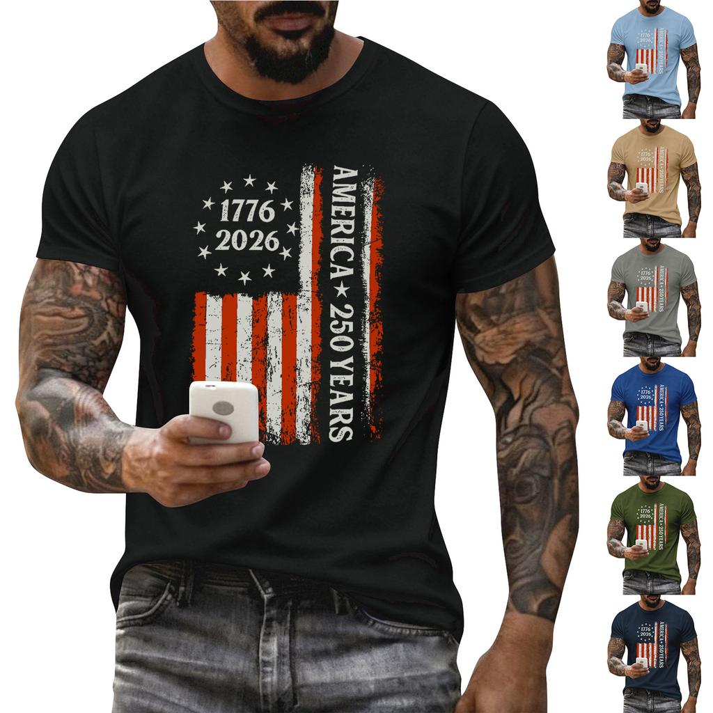 Men's Holiday Print Round Neck Short Sleeve Top Casual Sports Top