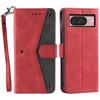For Google Pixel 9/9 Pro Leather Case Splicing Stitching Wallet Stand Phone Cover with Strap