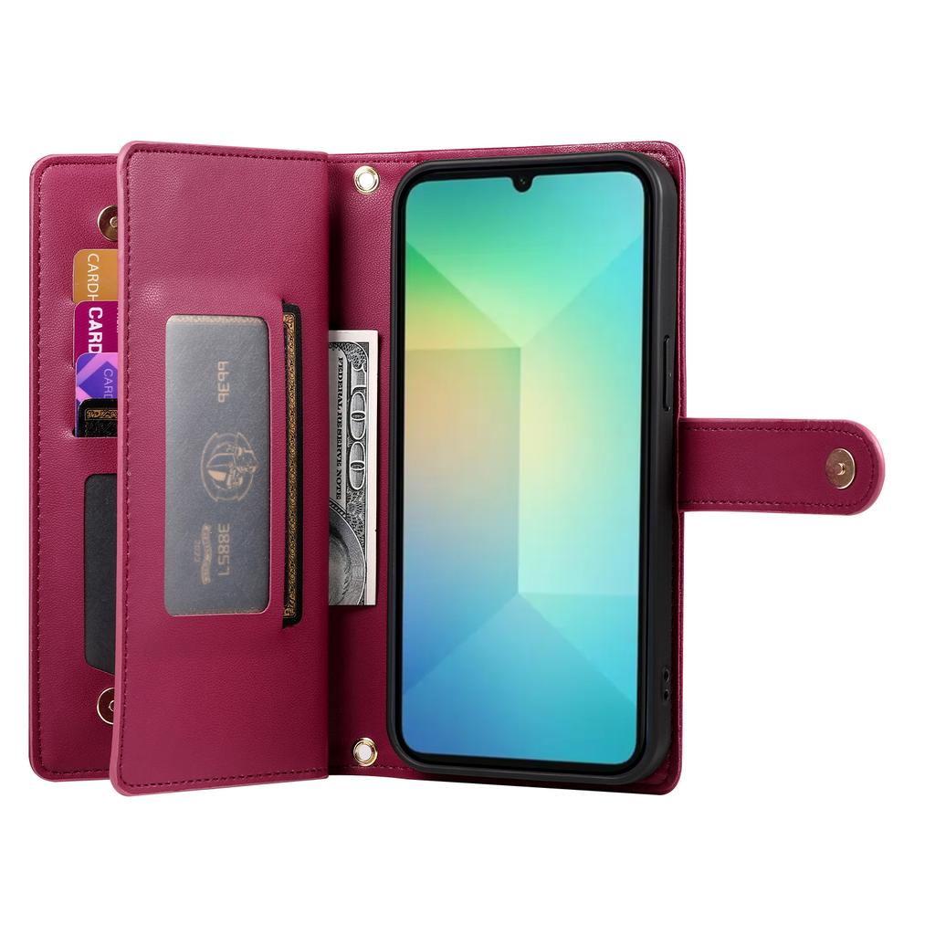 DF-011 For Samsung Galaxy A06 4G Case Zipper Pocket Wallet Leather Phone Cover with Straps