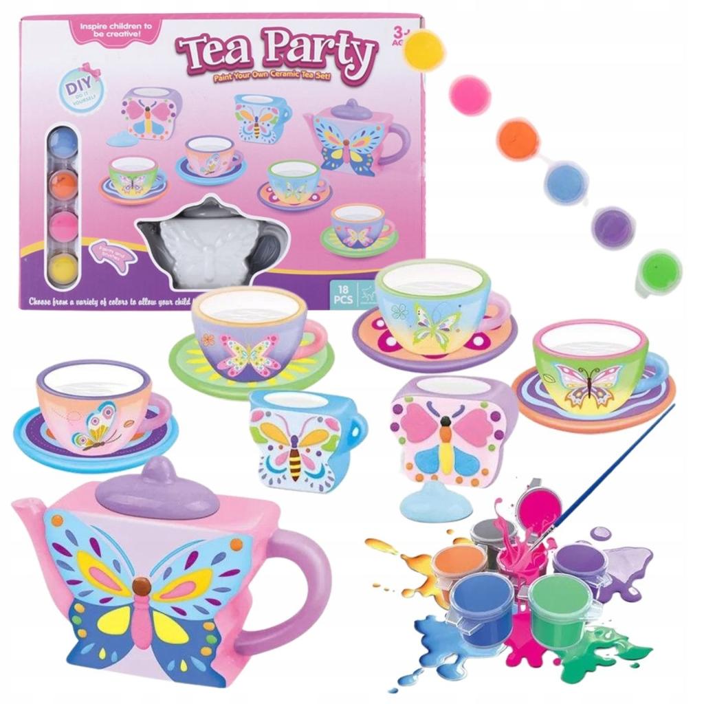 Tea Set Painting Cups Butterflies Plaster Figures Plaster Paints