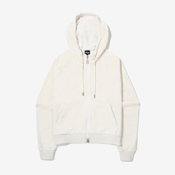 The FILA Velour Hooded Zip-Up is an outerwear item designed exclusively for women, made from stretchy and soft velour material. It features a hood design and a zipper closure for convenient wear, emphasizing a slim and fitted silhouette. Suitable for both casual wear and light exercise.