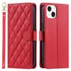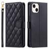 For iPhone 14 Leather Case Rhombus Grid Pattern Phone Wallet Cover
