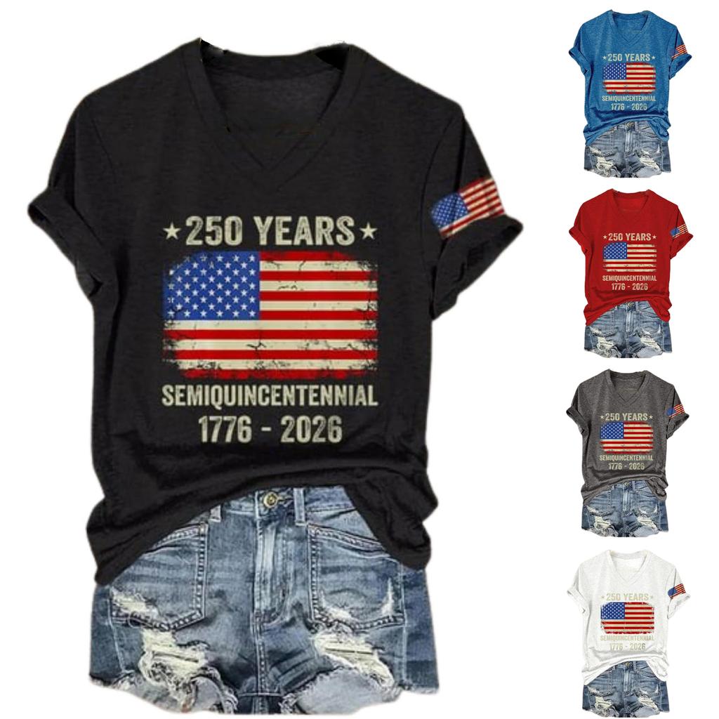 Women's Casual Round Neck Short Sleeve Pullover Printed T-Shirt Top