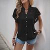 European Retro Sweet Hollow Lace Ruffle Sleeve Stand Collar Solid Color Women's Summer Shirt