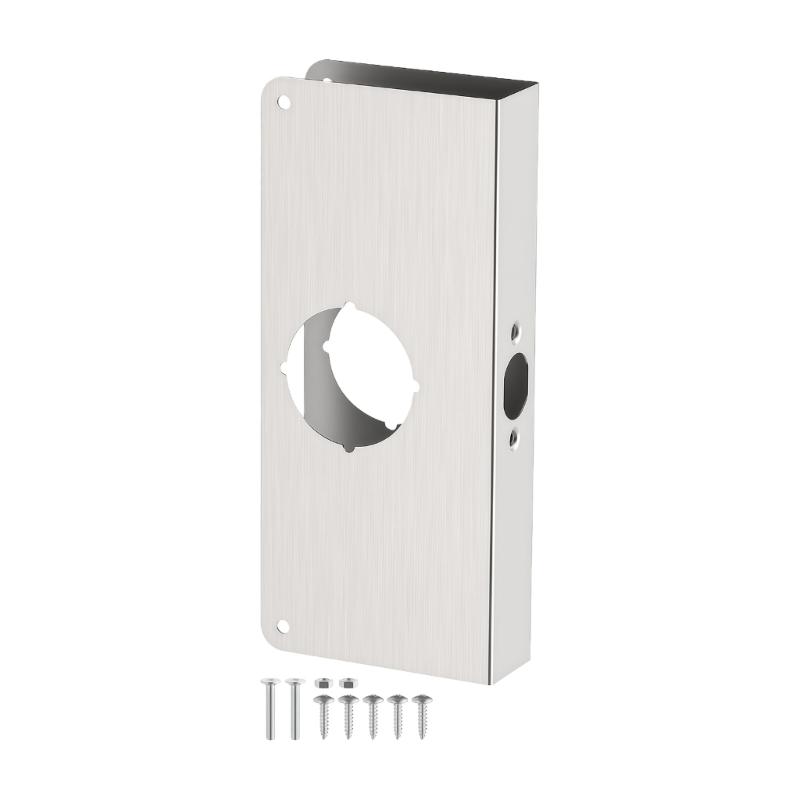 Stainless Steel Door Lock Reinforcement Plate Single Bore Hole Door Lock Plate for 1-3/8In Thick Doors Enduring