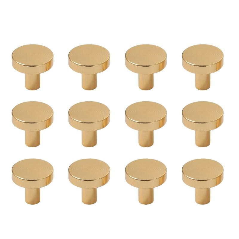 Set Of 12 Brushed Gold Dresser Knobs 1 Inch Diameter Gold Finish Cabinet Hardware Gold Drawer Knobs with Easy Install