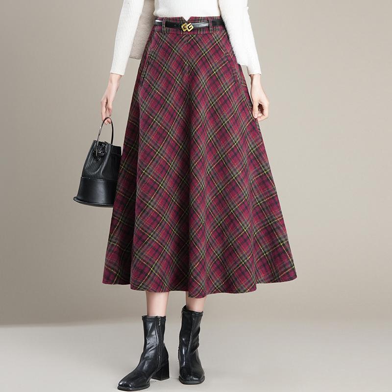 Woolen Plaid Pleated A-line Skirt - 2025 Winter Korean Style