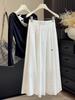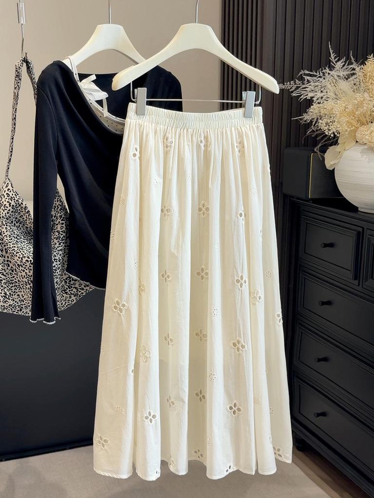 Elegant White Embroidered Flower Midi Skirt for Women - High Waist, Slimming, Long Draping Design